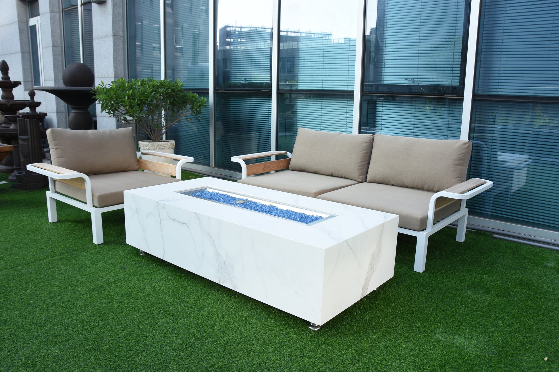 ELEMENTI PLUS CARRARA 60" Marble Porcelain Fire Table